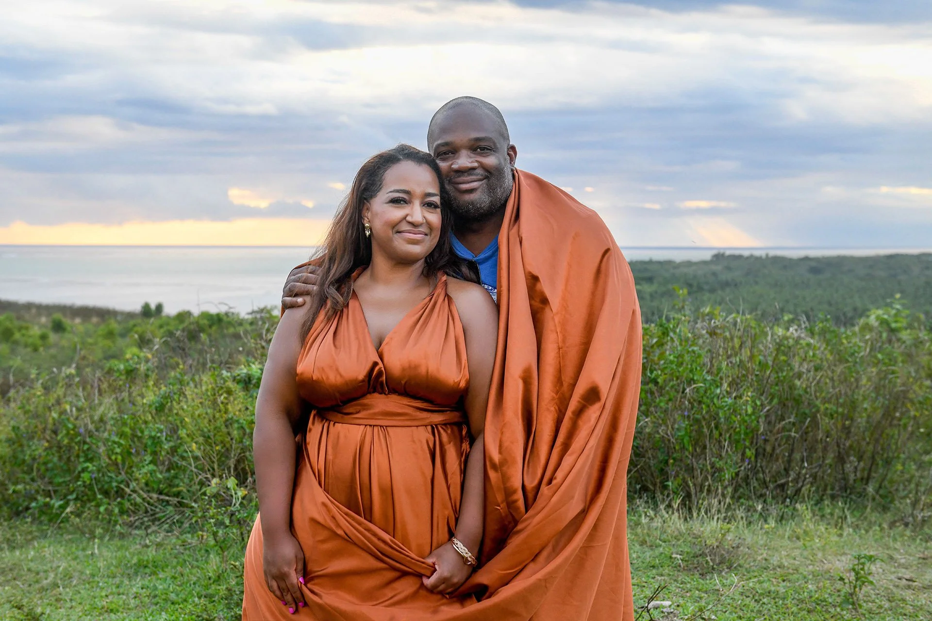 Stephanie had ordered the most beautiful silk tailored-made dress from a designer in Los Angeles. I love everything about it: how it suits her so well, how the texture is flawless, that colo pops and complements the surroundings and matches with her skin colors just perfectly!